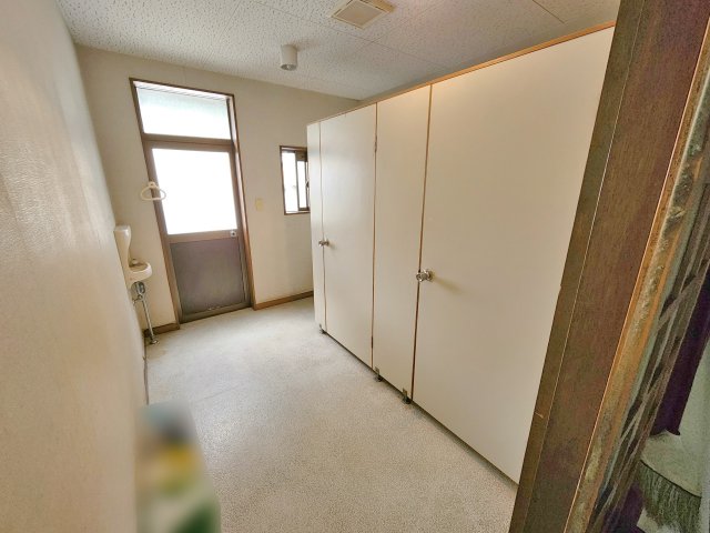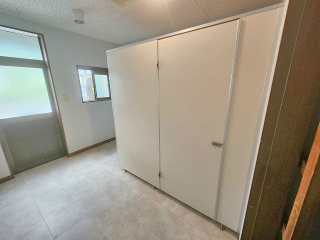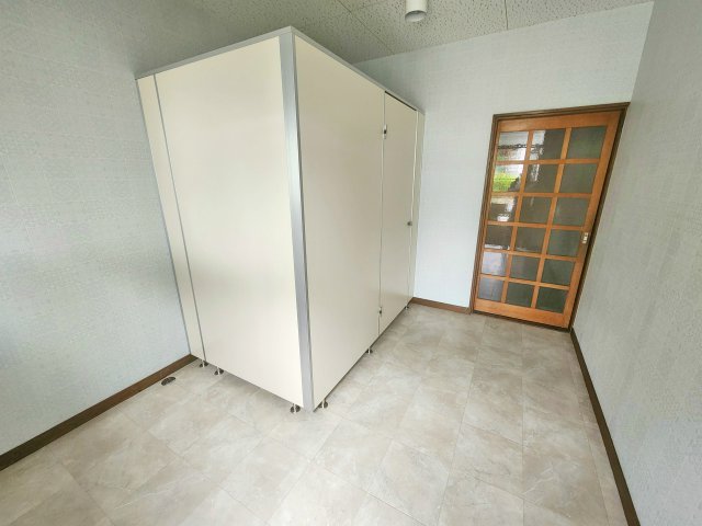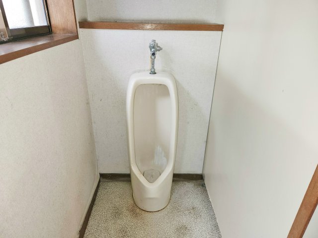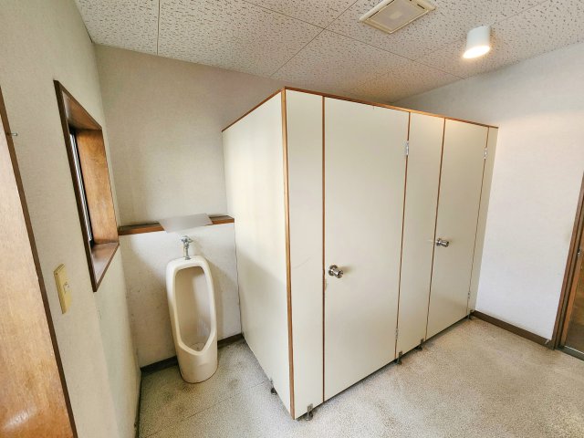 現地調査にお伺いした所、トイレ自体が広く、一つの空間に小便器、和便器、洋便器がパーテーションで区切られている状態でした。