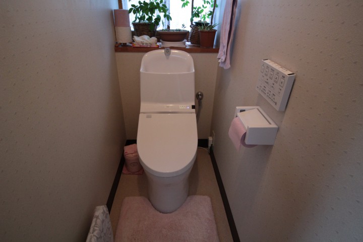 手洗い付きのタンク式だったトイレからの取替えをご依頼いただき、今まで同様トイレ内に手洗いが欲しいこと、また出来るだけ追加工事無しで取替えをしたいとのご要望もあり、同じ手洗い付きタンク式モデルを提案させていただきました。