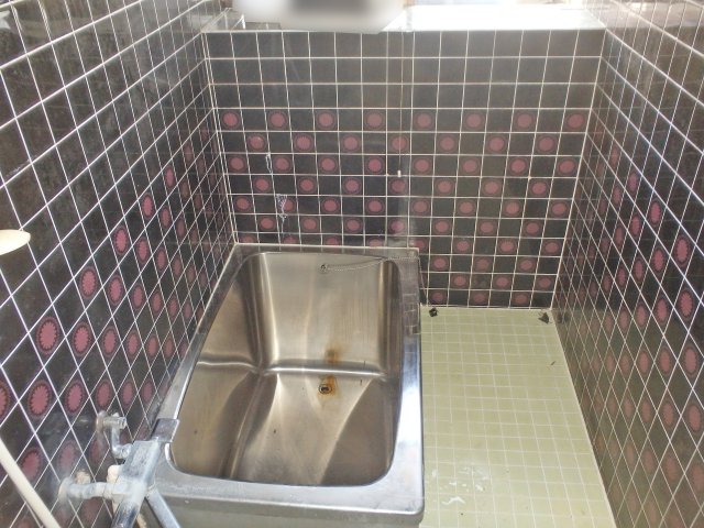現地調査にお伺いした所、床・壁はタイル張りで、深めのステンレス浴槽が埋まられている昔ながらのお風呂でした。