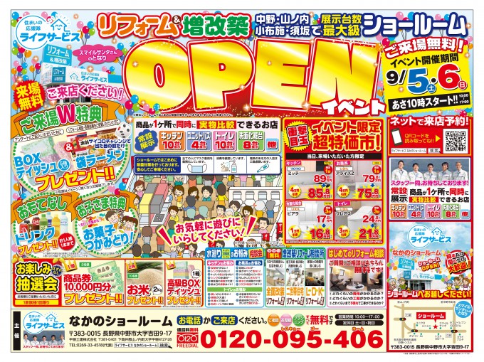 9月5日(土)、6日(日)の10時からライフサービスなかのショールーム